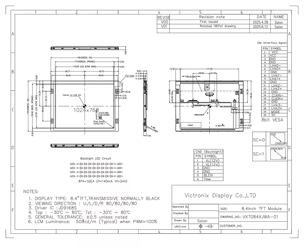 Is iondúil go n-úsáidtear an taispeántas TFT 8.4 orlach seo ag Victronix i HMIs tionsclaíoch, feistí leighis, córais cabhlaigh/feithicle, agus trealamh lasmuigh a éilíonn inléiteacht uile-aimsire agus iontaofacht fhadtéarmach.