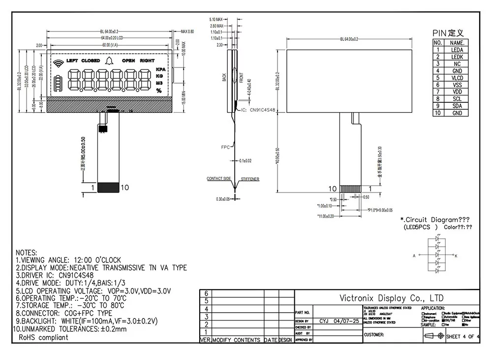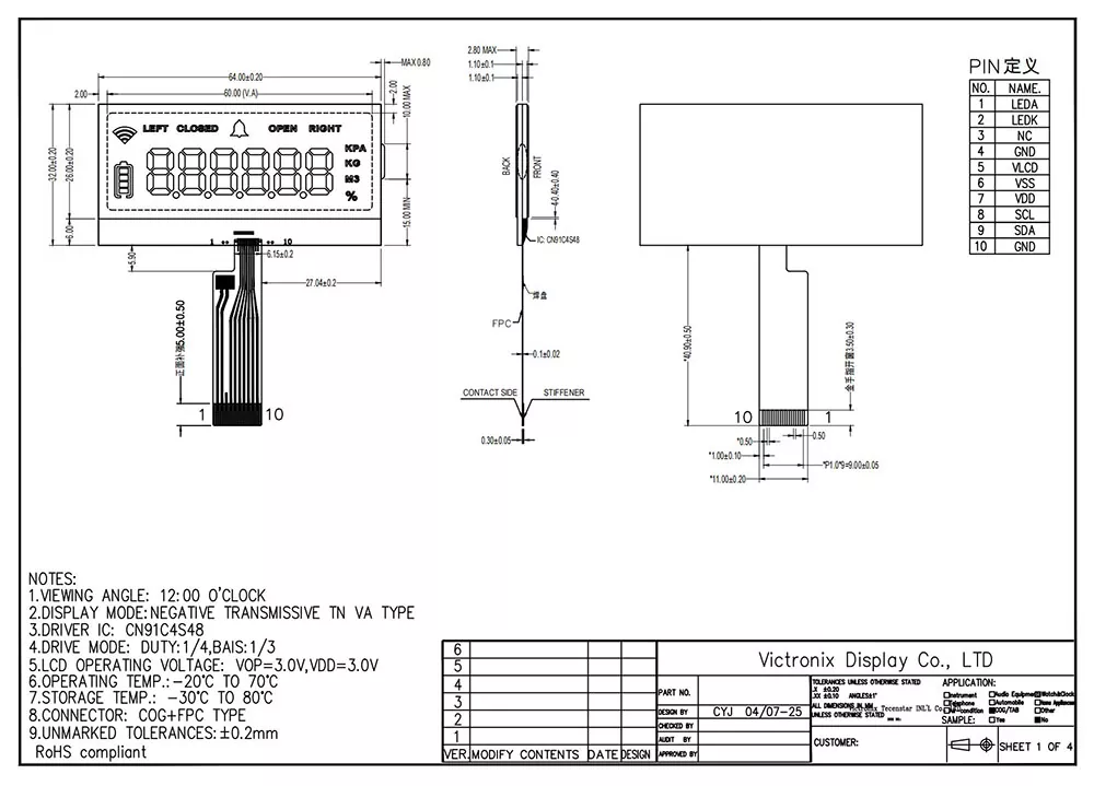 Tá an -mheas ar an modúl LCD VX50472 VA seo i margaí na Seapáine, cad a dhéanann ár dtáirgí difriúil ó mhonaróirí eile? Ar dtús, tá taispeántas diúltach tarchurtha ann le treo féachana 12 a chlog is fearr agus córas backlight faoi stiúir bán (VF = 3.0V, más = 60mA). Ar an dara dul síos, rinneadh é a bhailíochtú trí oibríocht 96hr ard-temp (70 ° C)/íseal-temp (-20 ° C), friotaíocht taise 90%RH, agus tástáil chreathaidh 10–55Hz chun oibriú go hiontaofa ó -20 ° C go +70 ° C. Thairis sin, úsáideann sé CN91C4S48 tiománaí IC agus cónascaire cineál COG+FPC. Ina theannta sin, is é 60 × 24 mm a limistéar taispeána agus is é an toise imlíne ná 64 × 2.8 × 32 mm (Excl. FPC).